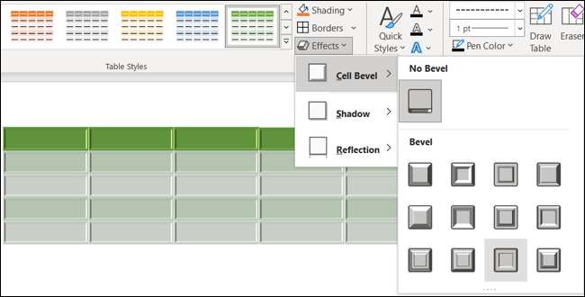 เอฟเฟกต์ช่วยให้คุณเพิ่มมุมเอียงสะท้อนหรือเงาลงในตารางของคุณ หนึ่งในนั้นสามารถให้โต๊ะของคุณได้ที่ Pizzazz พิเศษที่เพิ่มเข้ามาในลักษณะที่ปรากฏ