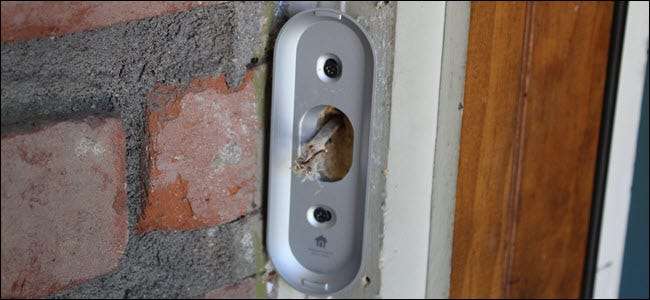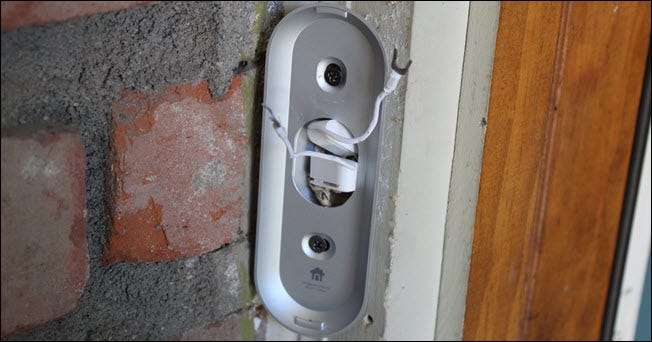 เมื่อคุณเชื่อมต่อทุกอย่างเรียบร้อยแล้วก็ถึงเวลาติดออดเข้ากับโครงยึด ด้วย Nest Hello คุณจะเลื่อนด้านบนเข้าที่ก่อนแล้วดันด้านล่างจนกว่าคุณจะได้ยินเข้าที่ ออดอื่น ๆ อาจต้องใช้สกรูเพื่อเชื่อมต่อกับโครงยึด โดยทั่วไปจะเรียกสกรูเพื่อความปลอดภัยและออดของคุณอาจมาพร้อมกับสกรูที่จำเป็น