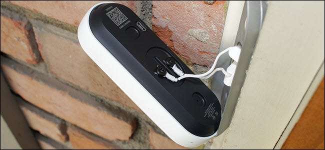เมื่อวงเล็บเข้าที่แล้วคุณจะต้องต่อสายไฟภายในบ้านเข้ากับออดวิดีโอ ผู้ผลิตทุกรายใช้วิธีนี้แตกต่างกัน แต่โดยทั่วไปแล้วจะเกี่ยวข้องกับการเดินสายสะพานบางประเภทที่เชื่อมต่อระหว่างสายไฟในบ้านของคุณกับกริ่งประตู ในกรณีของ Nest Hello สิ่งเหล่านี้เป็นที่หนีบคล้ายกับกล่อง Chime สายไฟเหล่านี้หลุดเข้ากับสายไฟภายในบ้านจนคุณรู้สึกได้ถึงการคลิก จากนั้นสอดลวดพิเศษเข้าไปในช่องว่างหลังขายึด หากไม่พอดีคุณอาจต้องถอดขายึดออกและใช้สว่านเพื่อสร้างพื้นที่เพิ่มเติม