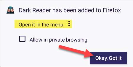 ติดตั้งส่วนขยายใน Firefox สำหรับ Android