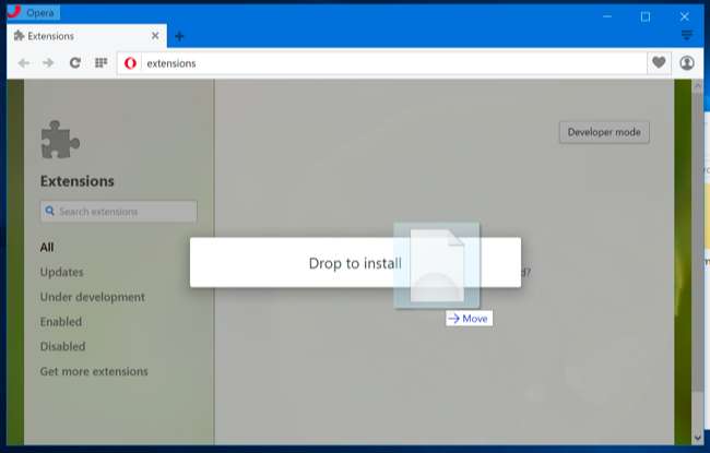 Opera ใช้ Chromium และรองรับส่วนขยายของ Chrome ติดตั้ง Opera และคุณสามารถโหลดส่วนขยาย Chrome ได้จากทุกที่ที่คุณต้องการ หากต้องการทำสิ่งนี้ใน Opera ให้เปิดหน้าส่วนขยายและลากและวางไฟล์. CRX ลงบนไฟล์ คุณจะได้รับแจ้งว่ามีการติดตั้งส่วนขยายจากภายนอกที่เก็บส่วนขยายอย่างเป็นทางการและขอให้ยืนยันการติดตั้ง