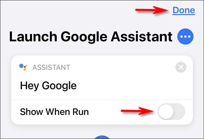 หลังจากนั้นคุณจะเห็นภาพรวมของทางลัดใหม่ของคุณซึ่งรวมถึงการกระทำเดียวเท่านั้น ง่ายมาก. ปิด "แสดงเมื่อเรียกใช้" ด้วยสวิตช์จากนั้นแตะ "เสร็จสิ้น"