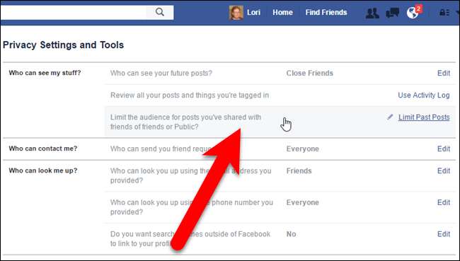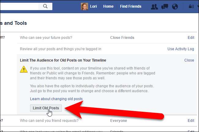 ส่วนนี้จะขยายและแสดงคำอธิบายว่าการตั้งค่านี้ทำอะไร หากต้องการ จำกัด โพสต์ในอดีตของคุณให้เป็นเพื่อนคลิก "จำกัด โพสต์เก่า"