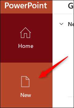 เพื่อเลือกเทมเพลต เปิด PowerPoint และคลิก "ใหม่" ในบานหน้าต่างด้านซ้ายมือ