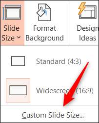 ถึง เปลี่ยนขนาดสไลด์ คลิก "ขนาดสไลด์" ในกลุ่มการออกแบบที่กำหนดเอง