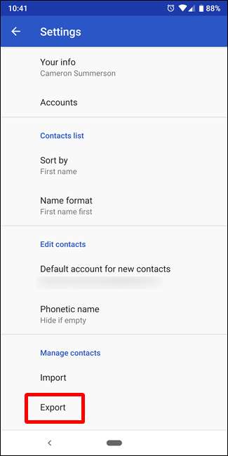 วิธีการส่งออกผู้ติดต่อด้วยแอปผู้ติดต่อของ Google