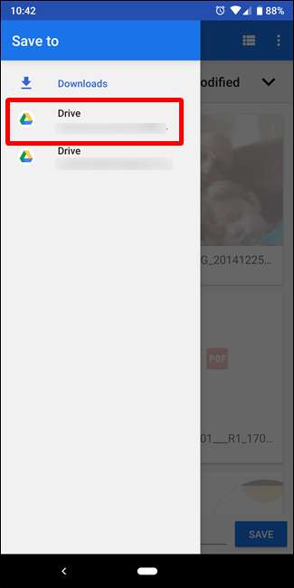 คุณสามารถบันทึกไฟล์ลงในไดเร็กทอรีดาวน์โหลดเริ่มต้นได้หากต้องการ แต่ถ้าคุณเป็นผู้ใช้ Google ไดรฟ์ให้เลื่อนเปิดเมนูแล้วเลือก Google ไดรฟ์ วิธีนี้ทำให้คุณมีข้อมูลสำรองเก็บไว้ในระบบคลาวด์