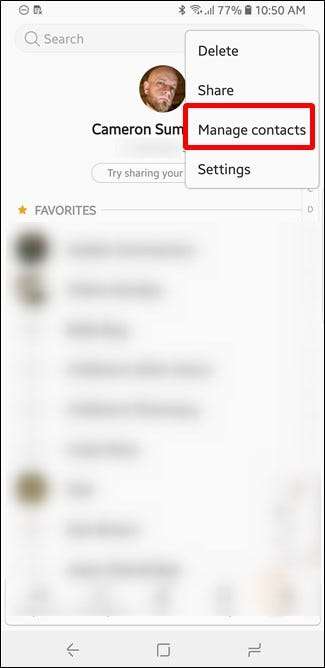 ไปข้างหน้าและเปิดแอปผู้ติดต่อ แตะปุ่มเมนูที่มุมขวาบนจากนั้นเลือกคำสั่ง“ จัดการผู้ติดต่อ”