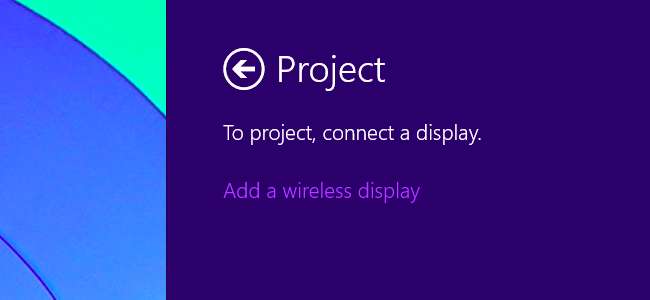 ต่อไปก็ถึงเวลาแคสต์จากอุปกรณ์ของคุณ บนพีซี Windows 8.1 ให้ปัดเข้าจากทางขวาหรือกด Windows Key + C เพื่อเข้าถึงทางลัด เลือกทางลัดอุปกรณ์แล้วเลือกโครงการ เลือก“ เพิ่มจอแสดงผลไร้สาย” เพื่อเริ่มการเพิ่ม Roku