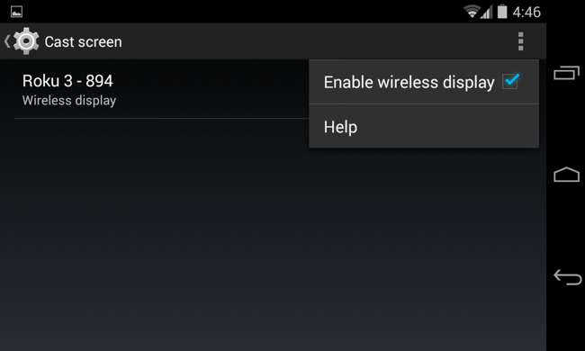บน Android ให้เปิดหน้าจอการตั้งค่าแตะจอแสดงผลแตะแคสต์หน้าจอแล้วคุณจะเห็น Roku ในรายการจอแสดงผลไร้สายที่มีอยู่ ปรึกษา คำแนะนำทีละขั้นตอนในการแคสต์ด้วย Miracast สำหรับรายละเอียดเพิ่มเติม