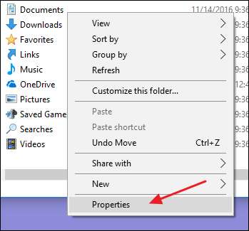 คลิกขวาที่โฟลเดอร์ที่คุณต้องการย้ายจากนั้นคลิก“ Properties”