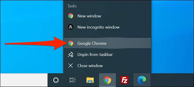 ตัวอย่างเช่นหากคุณคลิกขวาที่ไอคอน Google Chrome ในทาสก์บาร์ให้เลือก "Google Chrome" จากเมนูบริบท