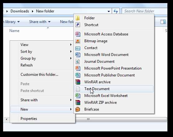 ตอนนี้สร้างเอกสารข้อความใหม่หรือไฟล์อื่นในโฟลเดอร์ คุณสามารถสร้างไฟล์ใหม่ได้ที่นี่นอกเหนือจากโฟลเดอร์หรือทางลัด