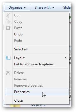 หากคุณไม่เห็นนามสกุลไฟล์ในรายการแสดงว่าคุณอาจมีนามสกุลของคุณซ่อนอยู่โดยค่าเริ่มต้น เพื่อให้มองเห็นได้คลิก จัดระเบียบ ที่ด้านบนของหน้าต่าง Explorer แล้วเลือก คุณสมบัติ .