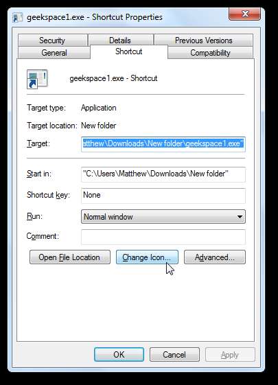 เลือกไฟล์ ทางลัด แล้วคลิก เปลี่ยนไอคอน .