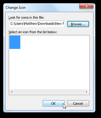 เรียกดูโฟลเดอร์ที่คุณบันทึกไอคอนโปร่งใสและเลือกเป็นไอคอนใหม่สำหรับทางลัดนี้ คลิก ตกลง เพื่อบันทึกการเปลี่ยนแปลง