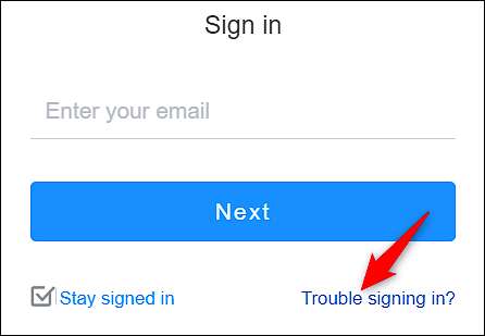 จากนั้นคลิกลิงก์ "ปัญหาในการลงชื่อเข้าใช้"