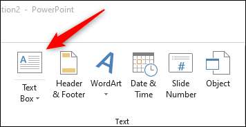 การหมุนข้อความด้วยมือนั้นง่ายเหมือนการคลิกและลากเมาส์ของคุณ ครั้งแรกเปิด PowerPoint และ ใส่กล่องข้อความ โดยคลิกที่ตัวเลือก "กล่องข้อความ" ในแท็บ "ข้อความ" ของแท็บ "แทรก"