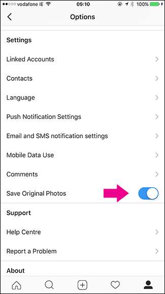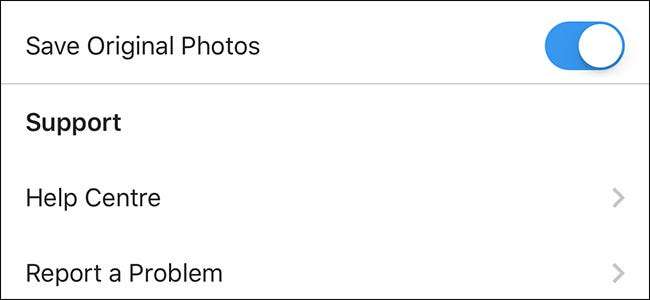 เลื่อนลงและภายใต้หมวดหมู่“ การตั้งค่า” ให้เปิด“ บันทึกรูปภาพต้นฉบับ”