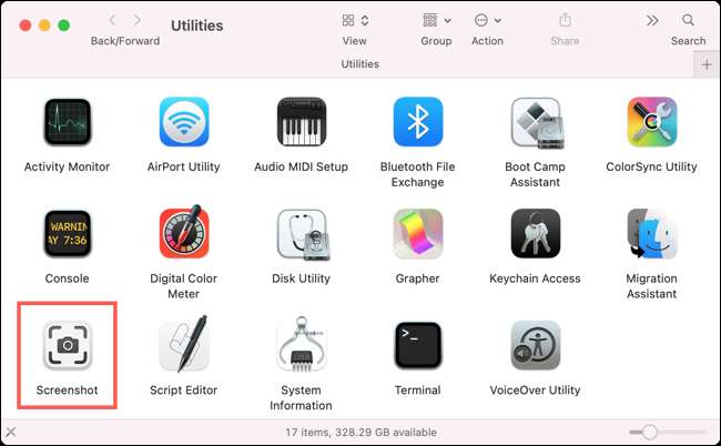 - ใช้สปอตไลท์ (คำสั่ง + พื้นที่) ค้นหา "ภาพหน้าจอ" และเลือกแอพจากผลลัพธ์