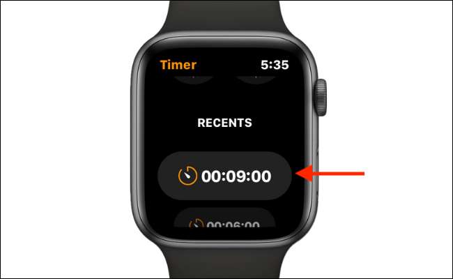 แอป Apple Watch Timer ยังช่วยให้คุณตั้งค่าตัวจับเวลาที่กำหนดเองที่จดจำเพื่อนำมาใช้ใหม่ในภายหลัง คุณสามารถเข้าถึงตัวจับเวลาแบบกำหนดเองได้บ่อยๆจากส่วน "ล่าสุด" ในแอปจับเวลา