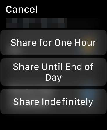 เมื่อคุณเลือกผู้ติดต่อแล้วให้เลือกระยะเวลาที่คุณต้องการแบ่งปันตำแหน่งของคุณ