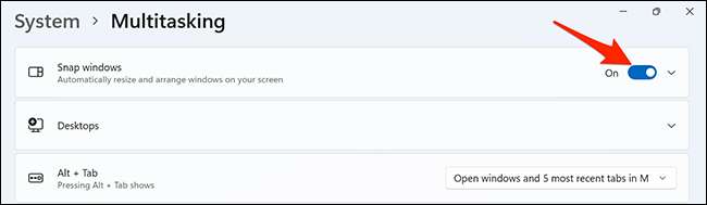 ที่ด้านบนของหน้าจอ "มัลติทาสก์" คลิกสลับ "สแน็ป Windows" เพื่อปิด