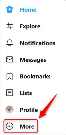 บน เว็บไซต์ Twitter คลิก“ เพิ่มเติม” จากเมนูหลัก