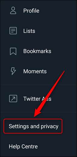 ในแอพ Twitter ให้ปัดไปทางขวาหรือแตะที่รูปประจำตัวของคุณที่มุมบนซ้ายเพื่อเปิดเมนูจากนั้นเลือก“ การตั้งค่าและความเป็นส่วนตัว”
