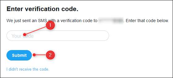 Twitter จะส่งข้อความ SMS พร้อมรหัส 6 หลัก ป้อนรหัสแล้วคลิก "ส่ง"