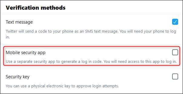 ในส่วน“ วิธีการยืนยัน” คลิกที่ตัวเลือก“ แอปความปลอดภัยมือถือ”