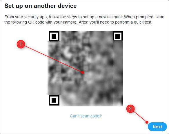 รหัส QR จะปรากฏขึ้น ตั้งค่าบัญชีใหม่ในแอปตรวจสอบสิทธิ์สแกนรหัส QR ด้วยโทรศัพท์ของคุณแล้วคลิก“ ถัดไป”