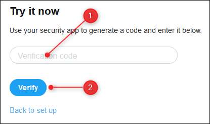 ป้อนรหัสจากแอปตรวจสอบสิทธิ์ของคุณแล้วคลิก "ยืนยัน" กระบวนการนี้จะยืนยันว่าแอปตรวจสอบสิทธิ์ได้รับการตั้งค่าอย่างถูกต้อง