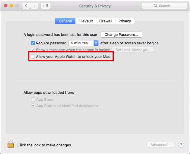 คลิกที่แท็บทั่วไปและทำเครื่องหมายในช่องที่ระบุว่า“ อนุญาตให้ Apple Watch ปลดล็อก Mac ของคุณ”