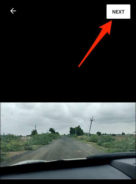 ตอนนี้คุณจะเห็นหน้าจอ "อัปโหลด" ที่แสดงวิดีโอทั้งหมดของคุณ ที่นี่แตะที่ วิดีโอที่คุณต้องการอัปโหลด ถึง YouTube จากนั้นเมื่อวิดีโอเริ่มเล่นให้แตะ "ถัดไป" ที่มุมบนขวาของแอพ