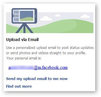 หากคุณต้องการส่งรูปภาพหรือวิดีโอไปยัง Facebook จากโทรศัพท์ของคุณคุณจะต้องคลิกหมายเลข 4 เพื่อรับที่อยู่อีเมลเฉพาะของคุณซึ่งจะช่วยให้คุณสามารถอัปโหลดข้อความสื่อได้