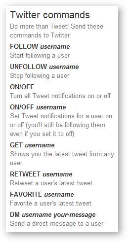 นอกจากนี้ยังมีคำสั่งพิเศษบางอย่างที่คุณสามารถใช้กับ Twitter ได้ เช่นเดียวกับเครือข่ายโซเชียลอื่น ๆ ให้ส่ง SMS พร้อมกับ "ความช่วยเหลือ" ทั่วโลกเพื่อรับคำสั่งต่อไปนี้