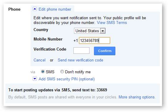 ลงชื่อเข้าใช้ Google+ และไปที่การตั้งค่าเพื่อเพิ่มหมายเลขโทรศัพท์ของคุณ ป้อนหมายเลขยืนยันที่จะส่งถึงคุณ