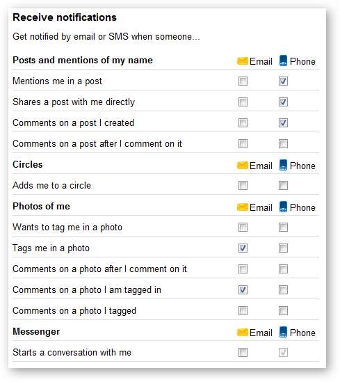 ข้อความจะส่งการอัปเดตเช่นเดียวกับที่ทำกับ Facebook และ Twitter ขณะนี้ยังไม่รองรับข้อความรูปภาพผ่าน MMS สำหรับ Google+ แต่คุณสามารถลงชื่อเข้าใช้ picasaweb.google.com ได้ให้ไปที่การตั้งค่าและตั้งค่าที่อยู่อีเมลลับสำหรับการอัปโหลดรูปภาพของคุณ