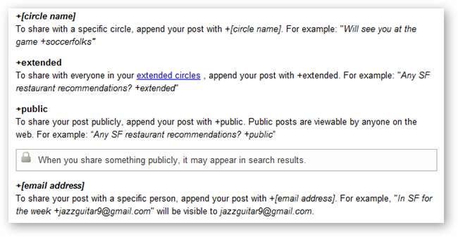 โดยค่าเริ่มต้นโพสต์ SMS จะแชร์กับทุกคนในแวดวงของคุณ แต่คุณสามารถเพิ่มหรือลบแวดวงได้โดยใช้สัญลักษณ์ + หรือ @