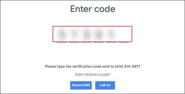 Google จะส่งข้อความไปยังโทรศัพท์ของคุณด้วยรหัสยืนยัน พิมพ์หมายเลขนั้นเพื่อยืนยันบัญชีของคุณ คลิก "ส่ง SMS อีกครั้ง" หรือ "โทรหาฉัน" หากคุณไม่ได้รับข้อความ