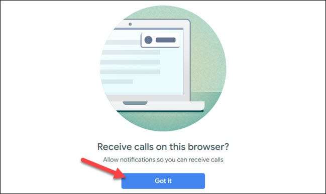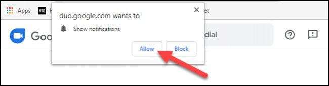 Google Duo อาจขออนุญาตส่งการแจ้งเตือนเกี่ยวกับการโทรเข้ารับการแจ้งเตือนเกี่ยวกับการโทรเข้า คลิก "ได้รับ" หากคุณเห็นข้อความนี้และต้องการเลือกใช้
