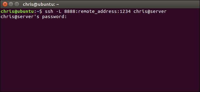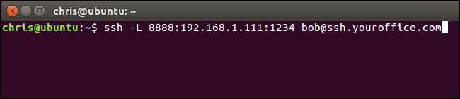 ตัวอย่างเช่นหากคุณต้องการตั้งค่าอุโมงค์ SSH เดียวกันกับด้านบนคุณต้องป้อน