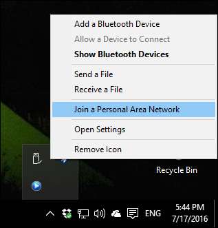 ในการเชื่อมต่อผ่าน Bluetooth จากคอมพิวเตอร์ Windows ขั้นแรกให้คลิกที่ไอคอน Bluetooth ในซิสเต็มเทรย์และเลือก“ เข้าร่วมเครือข่ายส่วนบุคคล”