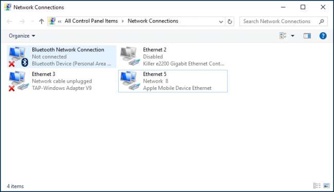 ในอะแดปเตอร์เครือข่ายของ Windows เราจะเห็นว่าเราเชื่อมต่อผ่าน“ Apple Mobile Device Ethernet”