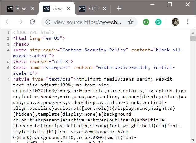 แท็บใหม่จะเปิดขึ้นพร้อมกับ HTML ทั้งหมดสำหรับหน้าเว็บซึ่งขยายโดยสมบูรณ์และไม่ได้จัดรูปแบบ