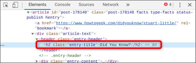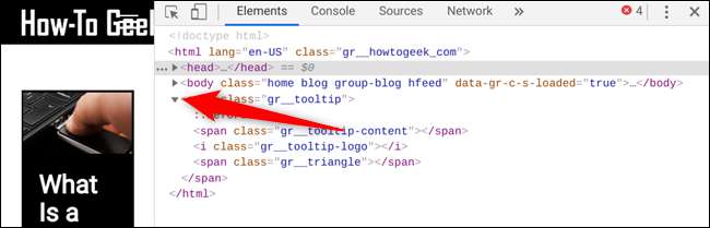 วิธีนี้ใช้บานหน้าต่างเครื่องมือสำหรับนักพัฒนาซอฟต์แวร์ใน Chrome และเป็นวิธีที่สะอาดกว่ามากในการดูซอร์สโค้ด ที่นี่อ่าน HTML ได้ง่ายขึ้นด้วยการจัดรูปแบบเพิ่มเติมและความสามารถในการยุบองค์ประกอบที่คุณไม่สนใจจะดู