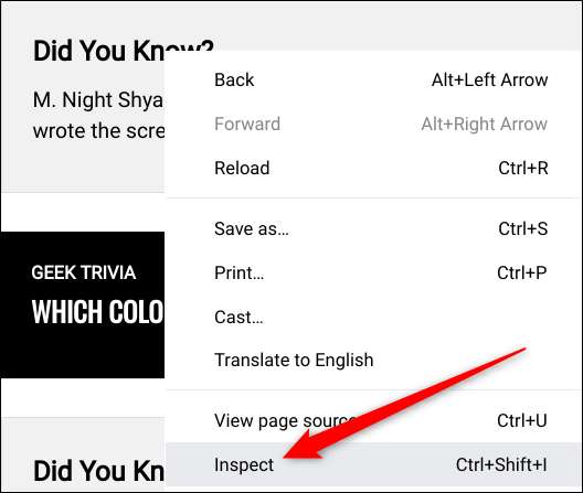 หากคุณไม่ต้องการเห็นโค้ดของทั้งหน้าตามค่าเริ่มต้น แต่ให้ตรวจสอบองค์ประกอบเฉพาะใน HTML แทนให้คลิกขวาที่ช่องว่างนั้นในหน้าจากนั้นคลิก "ตรวจสอบ"