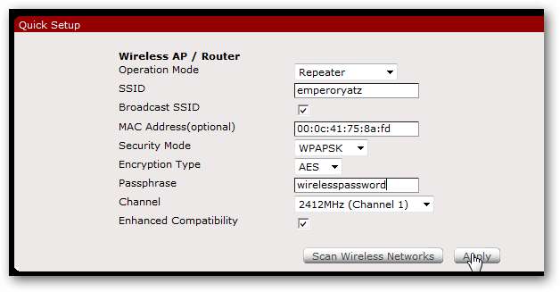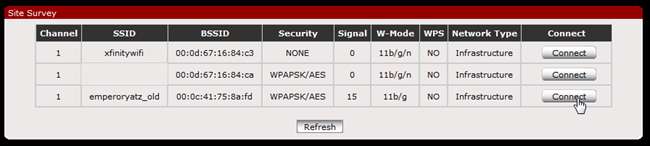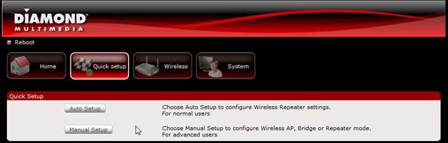 มีโหมด "ตั้งค่าอัตโนมัติ" ในอินเทอร์เฟซเว็บดังนั้นฉันจึงไม่ต้องกังวลกับการใช้การตั้งค่าซีดี การคลิกที่การตั้งค่าอัตโนมัติจะนำคุณไปยังหน้าแบบสำรวจไซต์ที่คุณเลือกเครือข่ายที่คุณต้องการทำซ้ำและนั่นก็ทำได้ดีทีเดียว (คลิกที่ภาพด้านล่างเพื่อดูขนาดเต็ม)
