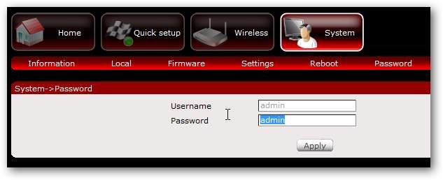 สิ่งแรกที่ฉันทำคือเปลี่ยนรหัสผ่านเริ่มต้น คุณสามารถทำได้โดยคลิกที่ปุ่มระบบจากนั้นคลิกรหัสผ่าน